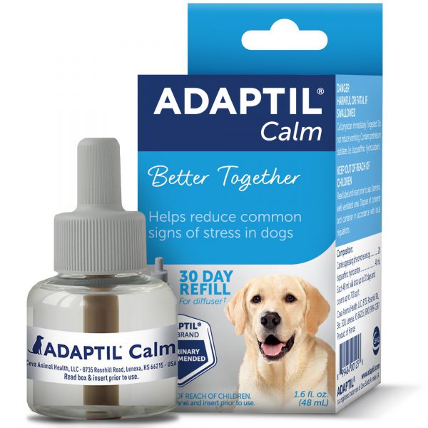 АДАПТИЛ Калм Дифузер е чудесно решение, което да помогне на Вашето куче да се успокои и адаптира у дома, в ситуации като да остане само, силни шумове, посетители и страхове.