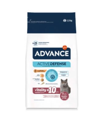 Advance Cat Senior е високачествена храна за котки на възраст над 10 години. Тя е висококалорична, за да компенсира загубата на апетит, характерна за възрастните котки. Има ниско ниво на фосфор за здрава бъбречна функция. Съдържа хондроитин и глюкозамин, за да заздравява хрущялната тъкан и предотвратява ставни проблеми, характерни за възрастните животни. Тауринът в състава й, е незаменима аминокиселина за добро зрение и здраво сърце. Омега-3 и Омега-6 мастни киселини допринасят за здравина и блясък на кожата и козината.