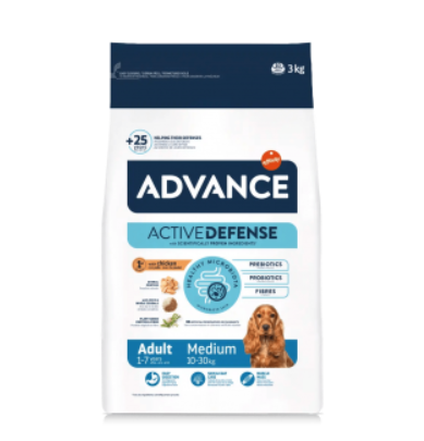 Advance Dog Medium Adult е пълноценна формула, подходяща за израстнали кучета (от 1 до 7 години) от средни породи (от 10 до 30кг в зряла възраст).