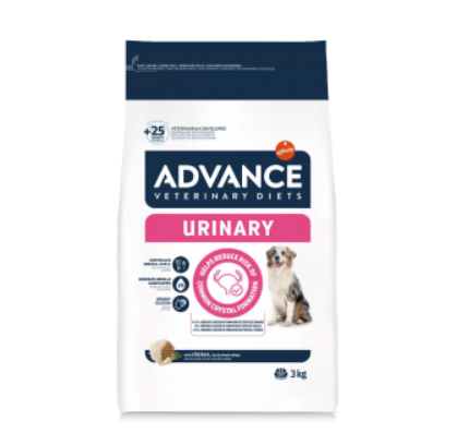 ADVANCE DOG VETERINARY DIETS URINARY е лечебна храна за кучета, която осигурява превенция и контрол над образуването на струвитни кристали и камъни. Има умерено съдържание на протеини. Съдържа ниски нива на фосфор и магнезий, поддържа правилната функция на бъбреците. С ниско pH. Има страхотен вкус и е подходяща за дългосрочно хранене.