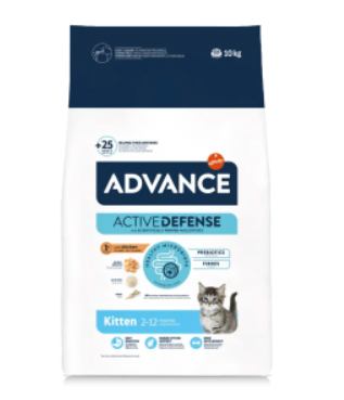 Advance Kitten е високачествена храна за котенца от 2 до 12 месеца, за бременни, и за кърмещи котки. Тя е богата на протеини и мазнини. Спомага за правилното развитие на подрастващите котенца и им осигурява допълнителна енергия. Съдържа оптимално съотношение калций и фосфор за правилно развитие на костната система. Източник е на Омега-3 и Омега-6 мастни киселини, които допринасят за здрава кожа и лъскава козина.