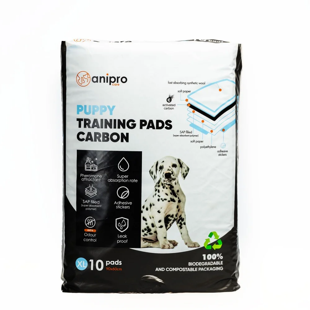 anipro Puppy Pads – хигиенни подложки (памперси) създадени за приучаване на малки кученца към хигиенни навици. Подходящи и за болни или възрастни кучета. Лесно се закрепват към всяка подова повърхност у дома – ламинати, теракота и др. Идеални за употреба по време на път – за транспортни чанти, седалки в кола, легла и др. 6-слоен състав за бързо попиване, мекота и неутрализиране на миризми.
