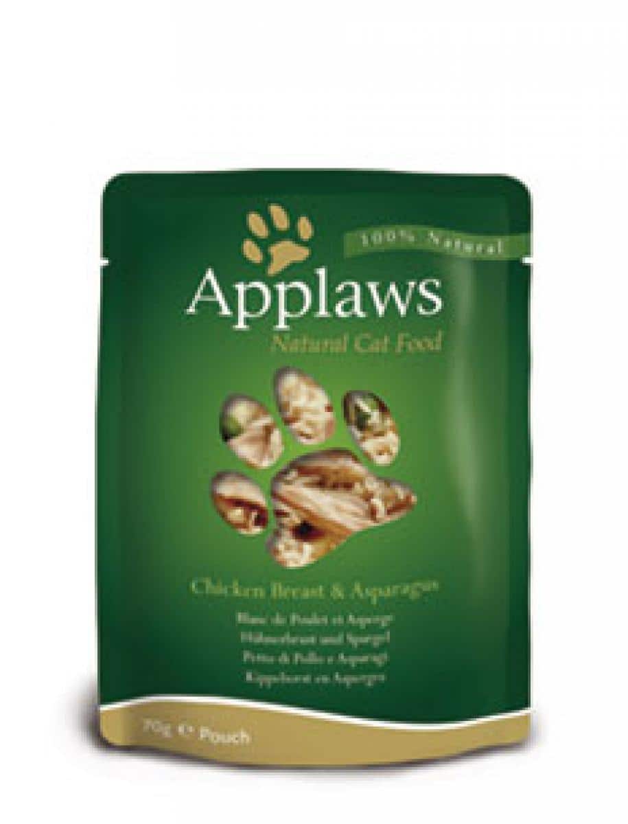 Applaws пиле и аспержи е първокласна храна за котки направена само от естествени продукти,описани на етикета. Тя е бедна на въглехидрати и богата на протеини от животински произход, източник на ценни амино, включително натурален таурин, за да е здраво и щастливо вашето коте.