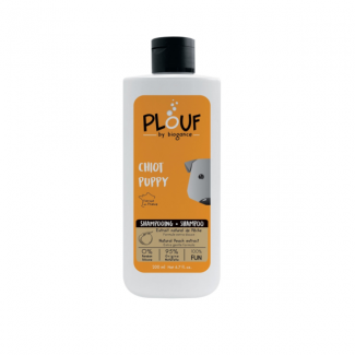 Шампоан за кученца без парабени с формула на базата на екстракт от праскова, който предлага нежно почистване.