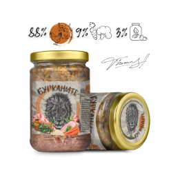 Бурканите са ежедневна храна за домашни зверове. Приготвени са от месо, зеленчуци и хранителни добавки. Готви се в буркан чрез стерилизация. По този начин всички полезни вещества остават в буркана, което прави менюто питателно, вкусно и здравословно. Натурална храна без консерванти, овкусители и оцветители.