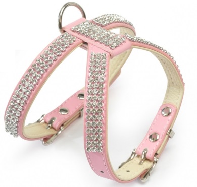Кожена сбруя и каишка с кристали.