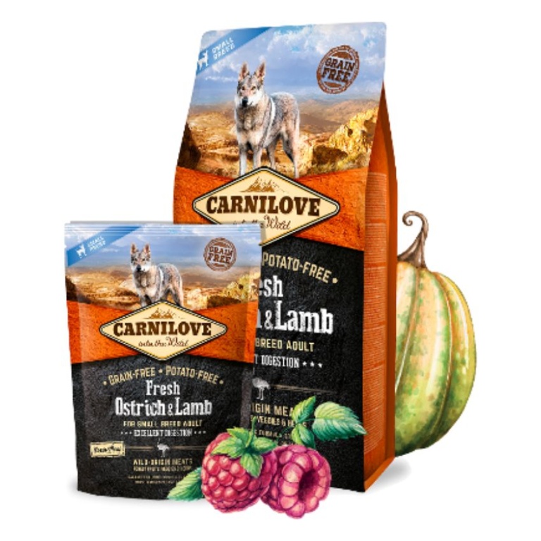 Създадена с уважение към законите на природата и специалните нужди на вашия малък кучешки приятел, Carnilove Fresh Ostrich & Lamb осигурява балансирано хранене, богато на прясно месо, комбинирано с разнообразие от зеленчуци, горски плодове и билки. Връщането към естествена диета гарантира оптимално усвояване на хранителни вещества и отлично храносмилане, като и двете спомагат за поддържането на малките породи кучета в отлично физическо състояние. Съдържание: пресен щраус (26%), сушено агнешко (20%), сушено пуешко (20%), пилешка мазнина (консервирана с токофероли, 9%), тиква, нахут, грах, пилешки черен дроб (3%), масло от сьомга (2%) ), ябълки, моркови, ленено семе, хидролизирани черупки от ракообразни (източник на глюкозамин, 0,026%), екстракт от хрущял (източник на хондроитин, 0,016%), бирена мая (източник на манан-олигозахариди, 0,015%), корен от цикория ( източник на фруктоолигозахариди, 0,01%), юка шидигера (0,01%), водорасли (0,01%), псилиум (0,01%), мащерка (0,01%), розмарин (0,01%), риган (0,01%), червени боровинки ( 0,0008%), боровинки (0,0008%), морски зърнастец (0,0008%), корен от джинджифил (0,0008%), градински чай (0,0008%) АНАЛИТИЧНИ СЪСТАВКИ В 1 КГ суров протеин 30,0 %, сурови мазнини 17,0 %, влага 10,0 %, сурова пепел 8,2 %, сурови влакнини 3,5 %, калций 1,6 %, фосфор 1,3 %, натрий 0,3 %, омега-3 0,6 %, омега-6 1,8 %, EPA ( 20:5 n-3) 0,08 %, DHA (22:6 n-3) 0,1 %