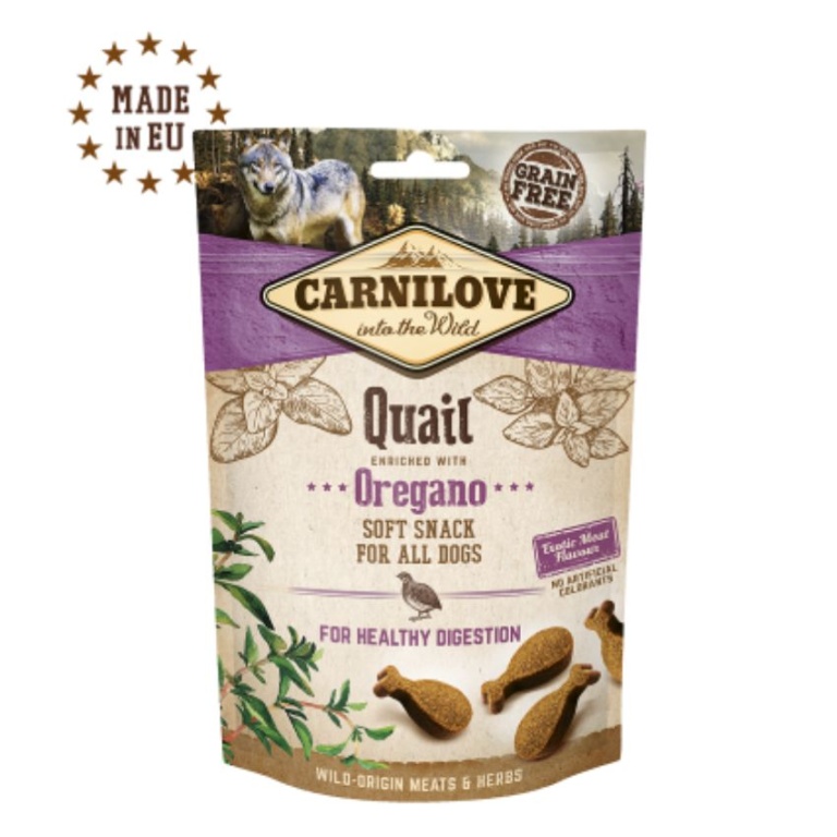 Съдържание: 35% сушен пъдпъдък, жълт грах, течно растително нишесте, сос от пъдпъдъци, сос от птичи дроб, колаген, 1% риган, масло от сьомга