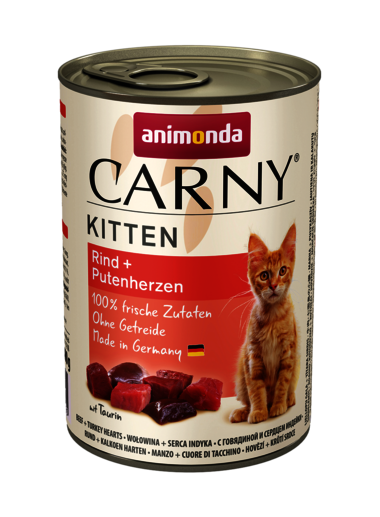 Carny Kitten Beef & Turkey Hearts – Консерва за котки с телешко месо и пуешки сърца за котки от 1 до 12 месеца