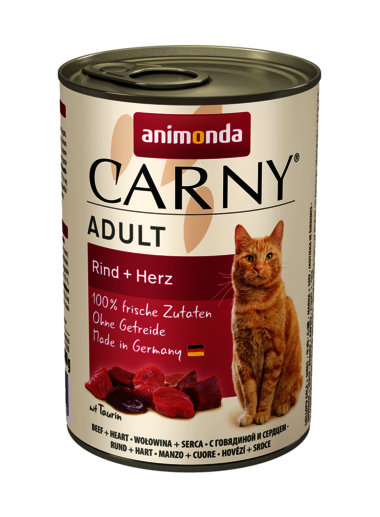 Гледай видеотоКотка Храна за котки Мокра храна Carny Adult Beef & Heart – Консерва за котки с телешко месо и сърца