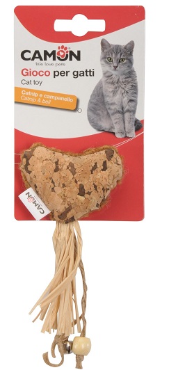 Camon Cat toy with catnip – heart with bell – Забавна котешка играчка корково сърце с въже и звънче