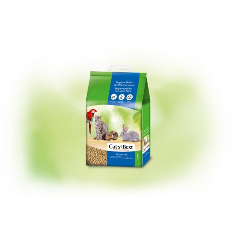 Универсалната хигиенична постелка е подходяща за използване при много видове домашни животни и птици като например: за котки, диви и питомни зайци, хамстери, чинчили, фретки, морски свинчета или за много видове птичи – също така и за домакинство, в което се отглеждат различни видове животни. Тази постелка е идеална като допълнителна постеля за по-мокрите места, като например около поилките или в тоалетните на животните и т.н. Растителните пелети Cat’s Best Universal неутрализират по естествен начин миризмите и попиват много добре влагата. Независимата комисия за оценяване на продуктите Stiftung Warentest също удостоверява най-доброто качество на продуктите Cat’s Best и превъзходното съотношение между цена и качество. Универсалната постелка може да закупите в удобни пликове от 10 литра.