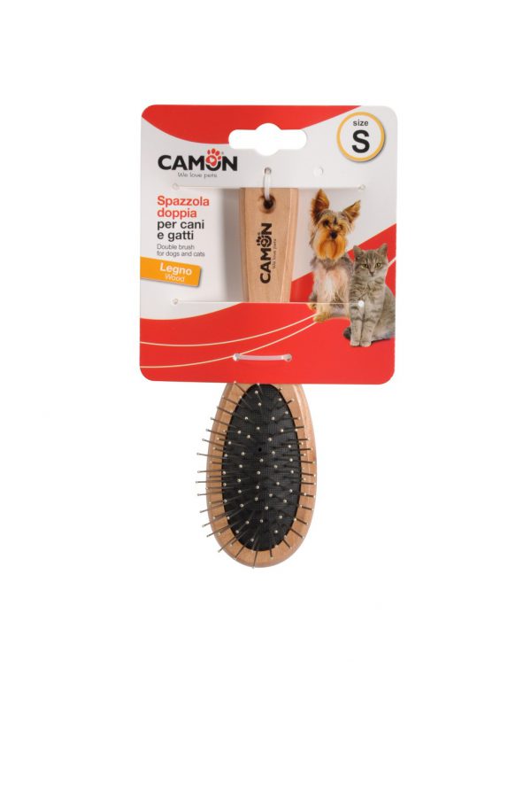 Двустранна четка с удобна дървена дръжка, естествен цвят.