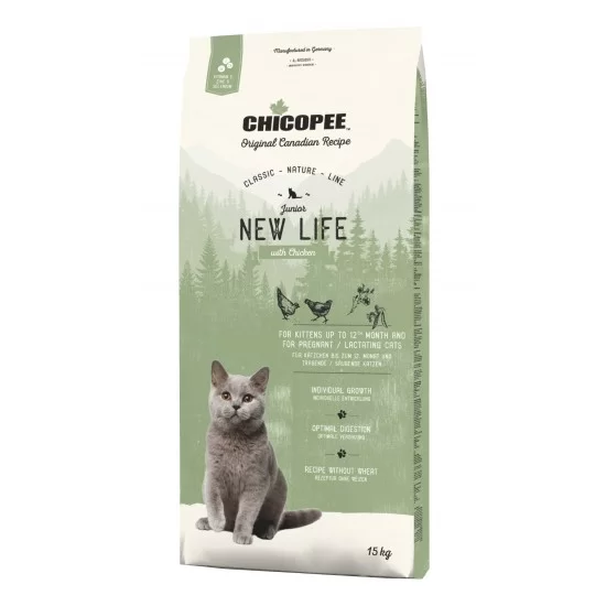 Храна за котка Chicopee Junior New Life Kitten – подходяща за котета до 12 месеца. Богата на витамини и минерали, необходими за оптималното храносмилане и здрава имунна система.