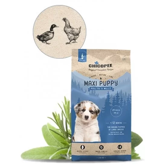 Продуктите на Chicopee са създадени по оригинална канадска рецепта. Концепцията за хранене без пшеница за кучета с изтънчен вкус, чувствителни към храната кучета от всички породи, със сигурност ще допадне на вашия четириног приятел. Ценните добавки като нашия комплекс за подвижност на ставите и здрава и лъскава козина поддържат оптималното хранене на вашето куче. За източник на въглехидрати ние използваме лесно смилаеми картофи и съзнателно не включваме никакви зърнени култури, така че вие храните вашето куче деликатно и без зърно.