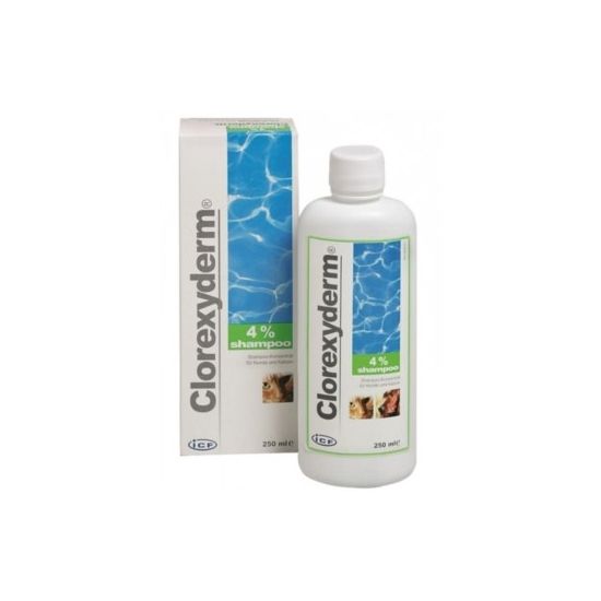 CLOREXYDERM SHAMPOO 4 % се използва за хигиена на кожа и козина при домашни любимци за постигане на силен антисептичен ефект.