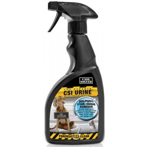 CSI Urine Spray се използва в професионалния сектор повече от 20 години – в клетките на полицейските кучета, болниците и заведенията за хранене. CSI Urine Spray не само ще почисти новите изцапвания, но се справи и със стари петна и наслоени миризми, за да помогнете за предотвратяване на повторно маркиране.