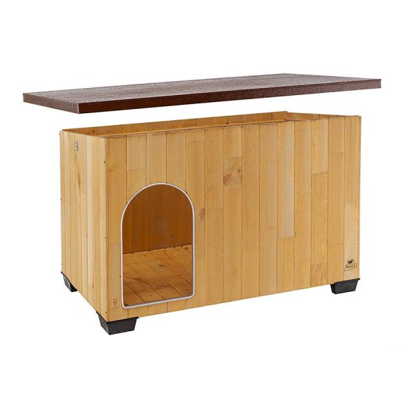 Baita е специално проектирана с леко наклонен покрив, за да позволи правилното оттичане на дъждовната вода. Подобно на всички дървени колиби за кучета Ferplast, специални процеси на покритие също се използват върху Baita, както вътрешно, така и външно, за да се осигури максимална издръжливост и устойчивост на атмосферни влияния. Нетоксичната, щадяща околната среда боя против мухъл е устойчива на UV лъчи, водоотблъскваща и се нанася чрез технологията на течно покритие.
