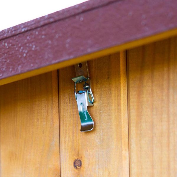 Baita е оборудвана с пластмасови крачета, които я изолират от земята. Специална метална кука гарантира, че покривът на кучешката колиба остава затворен и също така позволява отварянето му за ежедневно почистване и поддръжка.