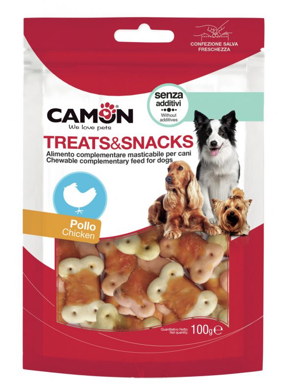 Camon Лакомство за Кучета – бисквити увити в пилешко месо са изключително вкусни и полезни. Увити са в парчета пилешко месо.