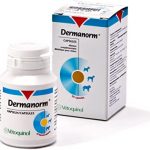 Предначначение: Dermanorm е хранителна добавка за кучета с лоша кожа и лошо състояние на козината. Капсулите съдържат мастни киселини, които са от съществено значение за поддържането на здрава кожа и козина. Източникът на активната съставка е масло от пореч, който съдържа висока концентрация на ненаситени мастни киселини – линолова киселина, цис-(LA) и гама-линоленова киселина (GLA) и рибено масло с високо съдържание на ейкозапентаенова киселина (EPA) и докозахексаенова киселина (DHA).