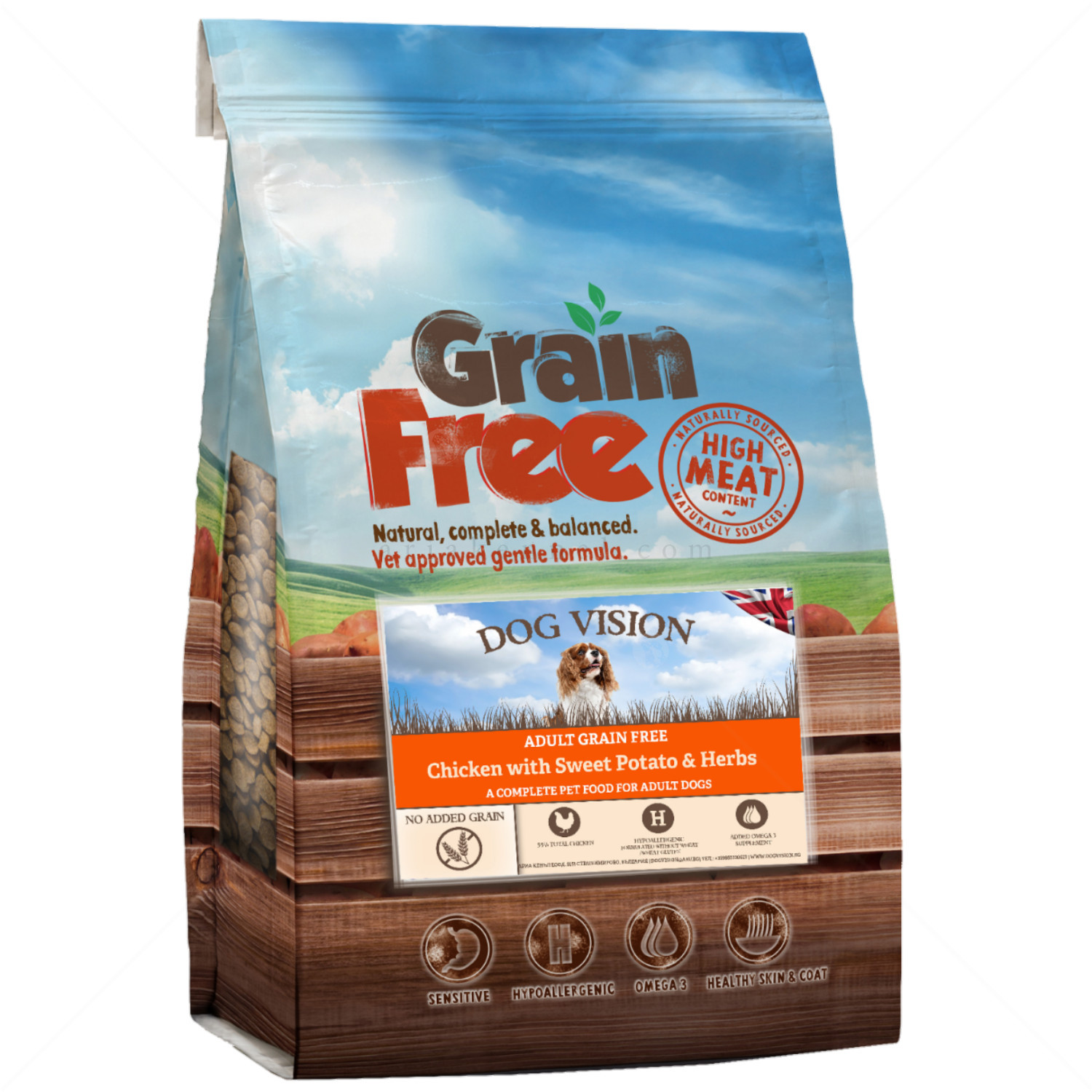 с общо 55% пилешко месо, 31% от което е прясно приготвено; без зърно, хипоалергенна – идеална диета, подходяща за кучета с непоносимост или чувствителност към зърнени храни; пълноценна и балансирана; одобрена от ветеринарни лекари; с пилешко месо – добър източник и на витамини и минерали, включително витамините от група В и желязо, които спомагат за общото здраве и благосъстояние; със сладък картоф – комплексен въглехидрат, отлична алтернатива на зърнените храни с високо съдържание на витамини от група В; с нисък гликемичен индекс, той е с ниско съдържание на мазнини за спомагане на здрава храносмилателната система; с билки, които съдържат изключително необходими витамини и полезни растителни съединения, имат антибактериални и антиоксидантни свойства; с пребиотици MOS (мано-олигозахариди) и FOS (фрукто-олигозахариди) – за стимулиране растежа на полезните чревни бактерии и за по-добро храносмилане; с добавено Омега 3 – отличен източник на EPA и DHA за поддържане на когнитивното и зрителното развитие и за красива козина и здрава кожа; без добавени изкуствени оцветители и консерванти; произведена в Англия. Гранулите са с кръгла форма и с размери приблизително 5 мм x 14 мм. Приготвени по технологията “freshtrusion” за заключване на свежестта и вкуса на храната.
