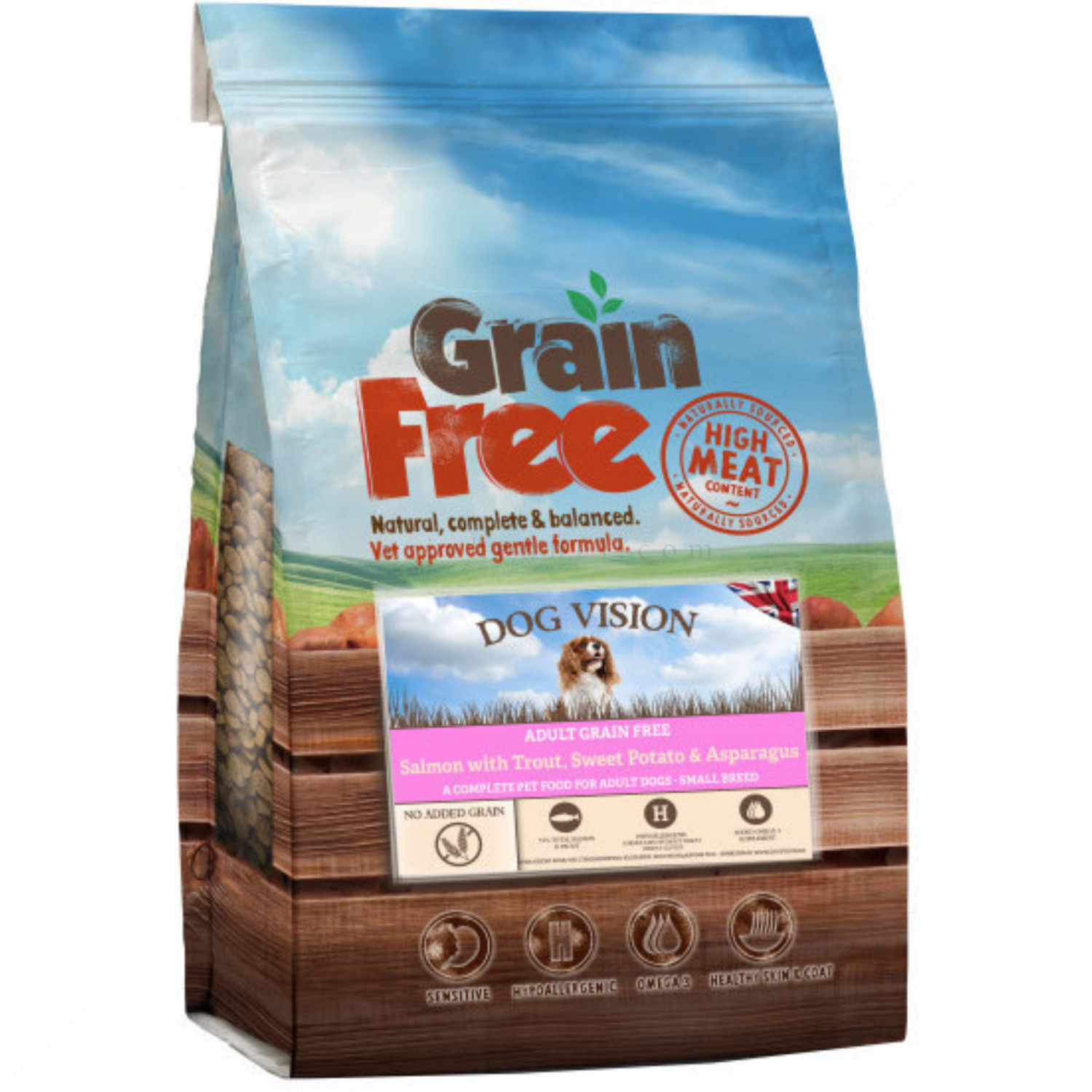 - без зърно, хипоалергенна – идеална диета, подходяща за кучета с непоносимост или чувствителност към зърнени храни;