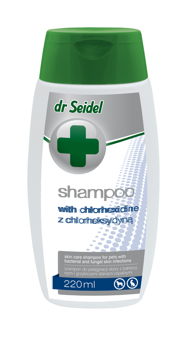 Концентрираният шампоан Dr Seidel с хлорхексидин е перфектен продукт за измиване и грижа за кучета, лекувани от кожни възпалителни състояния, причинени от грам-положителни и грам-отрицателни бактериални инфекции, гъбични (също причинени от дрожди) инфекции, нарушения на свръхчувствителност и хормонално-зависими дерматози. Хлорхексидинът помага за постигане на устойчиви ефекти благодарение на своята биполярна молекулярна структура. Шампоанът не причинява дразнене на кожата и лигавиците. Съдържа щадящи миещи препарати, подходящи за честа употреба.