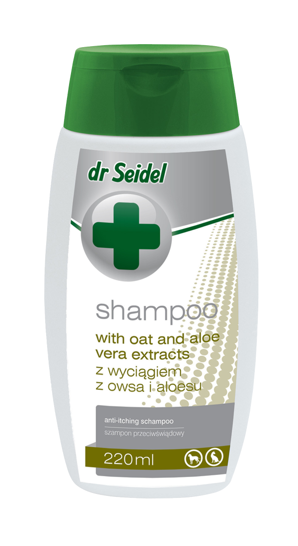 DR SEIDEL шампоан с екстракт от алое и овес е концентриран, специализиран продукт, който е идеален за суха кожа, склонна към раздразнения. Препоръчва се също така да се използва при лечението на кожни проблеми като атопия или възпаление на мастните жлези. Шампоан против сърбеж с екстракт от алое и карбамид има успокояващ и овлажняващ ефект. Освен това, съдържащата се в шампоана алантонина успокоява, омекотява и изглажда кожата. Продуктът осигурява отстраняване на най-голямите замърсявания, възстановява външния вид на естествена коса. Препоръки: Шампоанa служи за грижа за кожата: – суха и податлива на дразнене кожа, – като алтернатива при лечението на кожни проблеми като атопия или възпаление на мастните жлези. Активни съставки: – екстракт от овес – противосърбежен ефект. – урея и алое вера – овлажняващ ефект, – алантоин – Успокоява, изглажда и омекотява кожата. Начин на употреба: 1) Преди баня разрешете с гребен животното. 2) старателно намокрете кожата и косата с хладка вода. 3) Приложете шампоана, масажирайте енергично, докато не образувате пяна. 4) Оставете за 5 минути. След това изплакнете обилно. Повторете стъпките. Докато къпене защите очите, ушите и устата на животното. В случай на проблеми с кожата и начина на ползване консултирайте се с ветеринарен лекар.