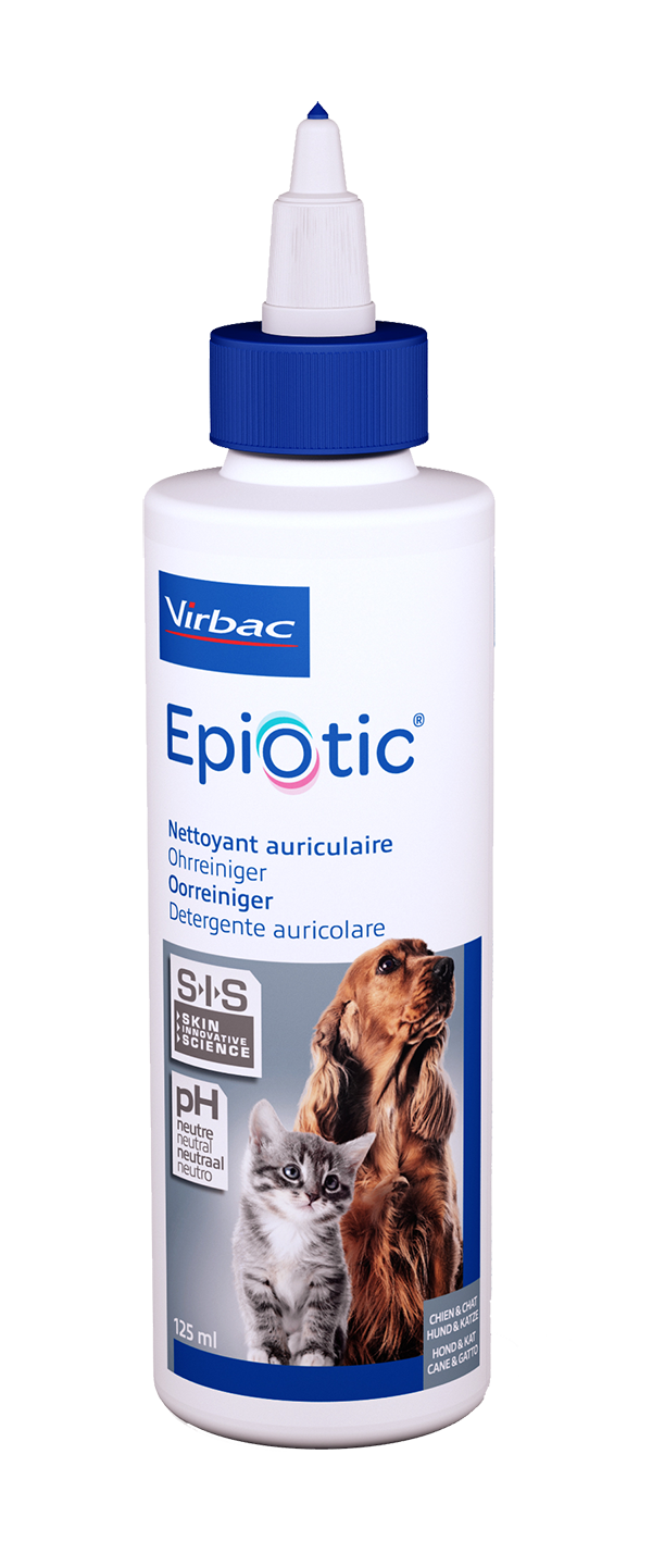Epiotic® е лосион с нежно действие за редовно почистване на ушите на котки и кучета или преди прилагане на ушни препарати. Отстранява мъртвите клетки и ушната кал и неутрализира неприятната миризма. Подобрява състоянието на ушния канал благодарение на съдържащата се в Epiotic® S-I-S (Skin Innovative ScienceTM) technology: комбинация от Glycotechnology (антиадхезивни ефекти, насочени срещу микроорганизмите) и Defensin technology (стимулиране на естествената бариерна функция на кожата).