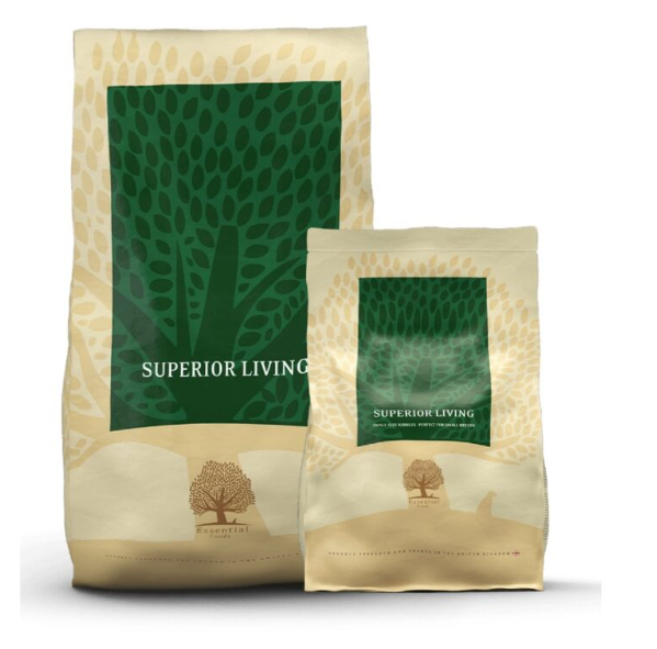 ESSENTIAL SUPERIOR LIVING ,е пълноценна храна с пилешко и патешко месо за възрастни кучета от всички породи, съдържаща най-добрите и качествени съставки, балансирани по най-добрия възможен начин. Вкусови алтернативи са ESSENTIAL NAUTICAL LIVING &ndash, с няколко вида риба и ESSENTIAL ESTATE LIVING &ndash, с агнешко и еленско месо.