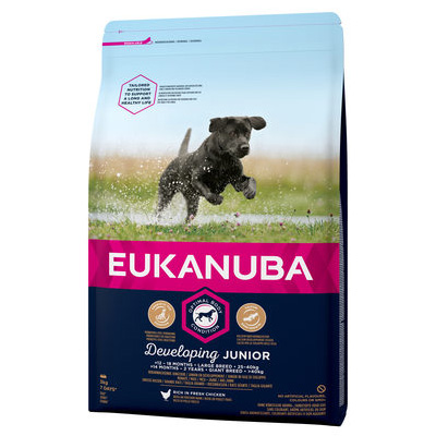 Кученцата от едрите и гигантските породи растат много бързо, поради което имат много специфични хранителни нужди. Тази система на Eukanuba има регулиран протеин, калций и енергийни нива, осигурява всички необходими витамини и минерали и осигурява балансирано мускулно и скелетно израстване на кученца от едри и гиганстки породи.