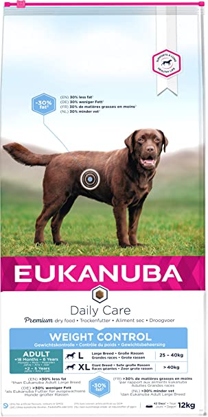 EUKANUBA DAILY CARE OVERWEIGHT CONTROL за малки и средни породи има повече от 30% по-малко мазнини (в сравнение с Eukanuba Adult Medium Breed), за да помогне на вашето куче да поддържа здравословно тегло. ,