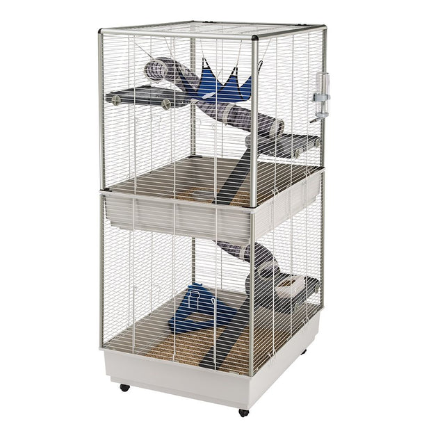 Многоетажно жилище за порчета. Със две пластмасови основи, солидна конструкция от боядисана телена мрежа с пластмасови колони. С пластмасови тунели между орделните нива. Оборудвана с ъглова тоалетна за порчета, поилка, пластмасови хранилки, рафтове и стълби. Може да се допълни с комплект колела.