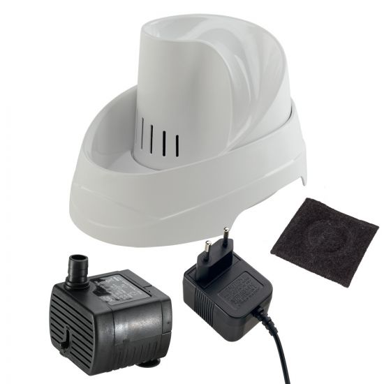 Vega е фонтан за котки, който може да се използва и за утоляване на жаждата на малки кучета. Интересното за този фонтан е пролетната атмосфера, която се създава със звука на водата. Тя стимулира естествената нужда на животните да пият вода. Специалната заоблена форма с ергономична дръжка са доказани като много удобни; гумените крачета против плъзгане в долната част гарантират стабилността на продукта. Фонтанът Vega разполага с три различни точки за пиене: една в долната част и две в горната . Vega се предлага в комплект с филтър с активен въглен за да бъде водата в него винаги кристално чииста. Комплектът включва също адаптер и помпа с ниско напрежение (12V) и максимална извършена работа за час 250 l / h. Размери: 23,1 x 29,7 x h 16,2 cm Вместимост: 2L
