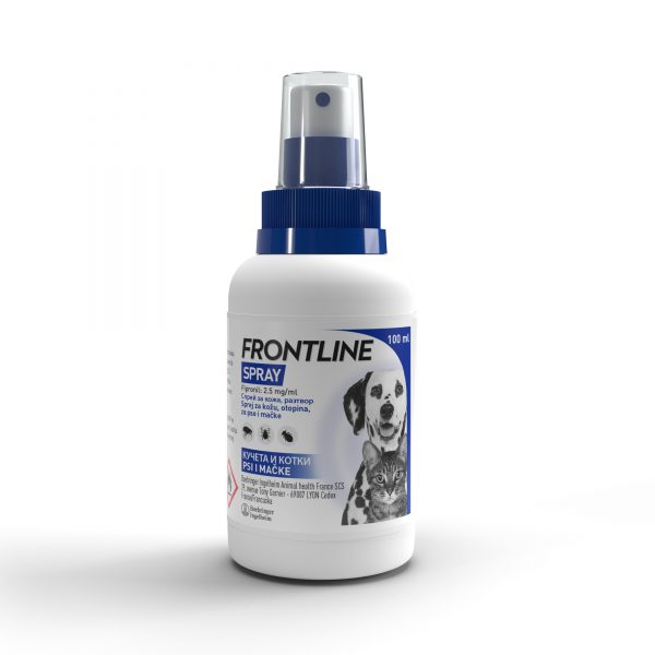 Приложен под формата на спрей, Frontline достига максималното си действие до 4 часа. Това е идеалното решение за третиране на животни при масивно опаразитяване както и за прилагане върху много млади животни (от 2-дневна възраст).