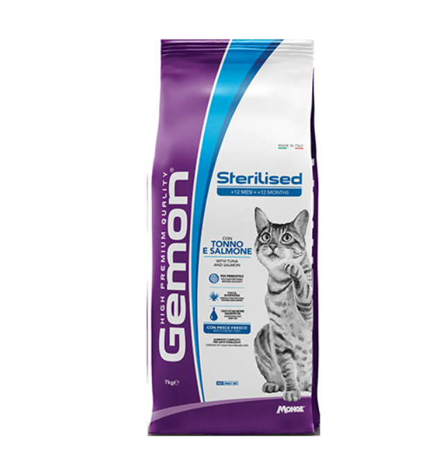 Пълноценна суха храна за кастрени котки над 1 година. СЪСТАВ: Зърнени култури (ориз 4%), рибни и рибни производствени продукти 30% (прясна риба тон 8% и прясна сьомга 8%), месо и животински производствени продукти, зеленчуци (цвеклова каша 2%), масла и мазнини (масло от сьомга 1%), производствени продукти от растителен произход (фрукто-олигозахариди FOS 0,5% и юка шидигера 0,1%), минерали, дрожди (манан-олигозахариди MOS 0,5%). АНАЛИТИЧНИ СЪСТАВКИ: Суров протеин: 32%, Сурови лакнини: 3,0%, Сурови мазнини: 12%, Суров пепел: 8,5%, фосфор: 1,1%; Магнезий: 0,08%, Натрий: 0,4%, Омега-3 мастни киселини: 0,5%, Омега-6 мастни киселини: 3%, метаболитна енергия: 3860 kcal/kg. ДОБАВКИ: ХРАНИТЕЛНИ ДОБАВКИ/кг: Витамин А (ретинил ацетат) 30,700 IU, Витамин D3 1,610 IU, Витамин E (all-rac-alpha-tocopherylacetate) 72 mg, холин хлорид 1000 mg, селен (натриев селенит 0,24 mg) 0 ,11 mg, Манган (манганов сулфат монохидрат 50 mg) 16,5 mg, цинк (цинков оксид 96 mg) 77 mg, мед (меден (II) сулфат пентахидрат 26 mg) 6,6 mg, желязо (железен (II) сулфат монохидрат 167 mg) 55 mg, йод (безводен калциев йодат 1,35 mg) 0,8 mg, таурин 1200 mg, DL-метионин (технически чист): 1000 mg. ТЕХНОЛОГИЧНИ ДОБАВКИ: Антиоксиданти.