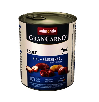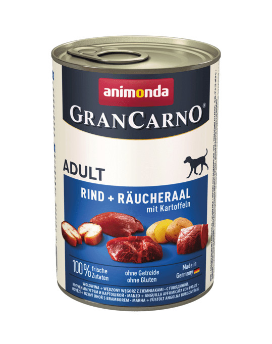 Куче Храна за кучета Мокра храна GranCarno Original Adult Rind & Eel & Potato – Консервирана храна за кучета с телешко, пушена змиорка и картофи