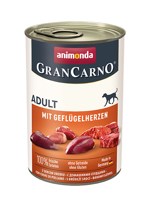 Куче Храна за кучета Мокра храна GranCarno Original Adult Hearts – Консервирана храна за кучета с пилешки сърца