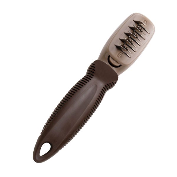 Гребен за силно сплъстена козина. С нея лесно ще срешете домашния любимец. Дръжката е така направена, че да е лесна за употреба от хора, които боравят с дясната ръка или с лявата.