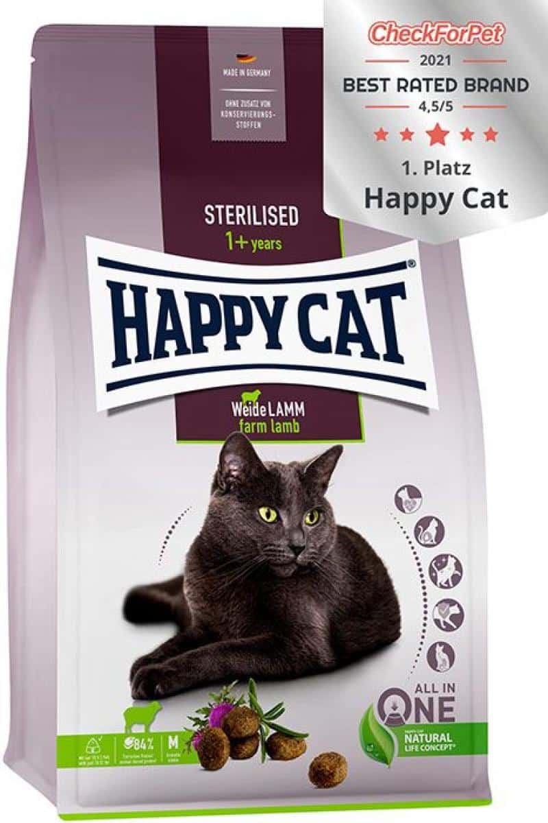 Happy Cat Sterilised Lamb – пълноценна храна с агнешко месо за кастрирани котки