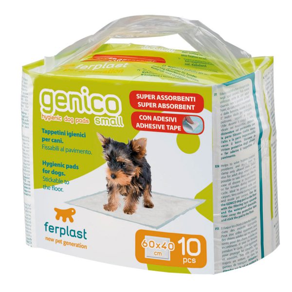 Изработена от здрава пластмаса, Hygienic Pad Tray е практична тава за хигиенни подложки за кучета, създадена да поддържа подложката на място, дори когато е много мокра, като не позволява да се движи, когато кучето е над нея и следователно гарантира максимална хигиена. Подложката се поддържа на място с практична външна рамка и удобни затварящи се рамки. Таблата също има противоплъзгащи се гумени крачета, за да увеличи стабилността си. Хигиенната тава е идеалното допълнение за хигиенните подложки за кучета, като Genico Small или Medium by Ferplast, у дома или на добре определено място. Идеален за кучета след операция, например, или ако вашият домашен любимец е твърде болен, за да излезе на разходка. Лесен за използване, освен това е перфектен да научите кучето си как да използва определено място,за да се изхожда. Хигиенната подложка се предлага в 2 размера: Малък е подходящ за подложки с размери 60 х 40 см (Genico Small), докато средният е идеален за 60 x 60 такива (Genico Medium). Хигиенните подложки Genico са изработени от ултра абсорбиращ материал, перфектни за обучението на вашето куче да go само в зоната, предназначена за тази цел. Те могат да се използват и от възрастни кучета, когато извеждането им не е опция, за болни или женски кучета по време на менструация.