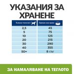 Поискайте от ветеринарния лекар да ви даде конкретни указания за храненето на вашия домашен любимец. Това са само общи насоки. Грамовете са най-точната форма на измерване. Ако използвате мерителна чашка на Hill’s, вижте cup.hillspet.com.