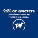 Експертите по хранене и ветеринарните лекари на Hill’s разработиха клиничната храна за кучета Prescription Diet Metabolic специално за отслабване и поддържане на теглото. Действа съобразно индивидуалния разход на енергия на кучето за лесно и ефективно отслабване. Тази храна стимулира естествената способност на кучето да изгаря излишните мазнини и осигурява енергия за активна игра. Нейният уникален микс от фибри помага на кучетата да се чувстват сити и доволни. Всъщност, 96% от кучетата, хранени у дома с Metabolic, отслабнаха в рамките на 2 месеца.* Тази суха храна се приготвя с пилешко и има неустоим вкус, който кучето ви ще обикне.