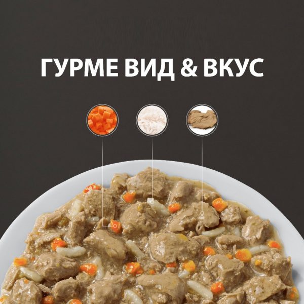 С пилешко и зеленчуци: пилешко (18%), свински черен дроб, пшеничен глутен, оризово нишесте, ориз, изсушени моркови, животински мазнини, минерали, оризово брашно, животински овкусител, целулоза, соево масло, фруктоолигозахариди (0.12%), псилиум, таурин, витамини и микроелементи. Общо зеленчуци (1%).