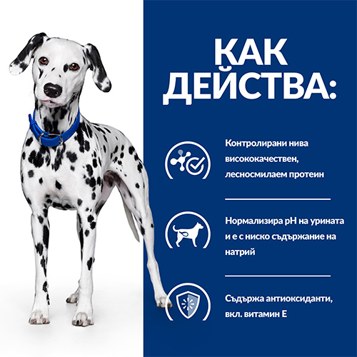 Експертите по хранене и ветеринарните лекари на Hill’s разработиха диетичната храна Prescription Diet u/d специално за поддържане на пикочния мехур на кучетата.