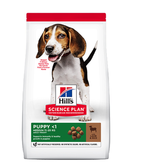 Пълноценна храна за подрастващи кученца от средните породи породи (11 до 25кг в зряла възраст) на възраст от отбиването до 12 месеца; за бременни и кърмещи кучета. Формулирана с агнешко и ориз, с богат вкус, която гарантира развитието на подрастващите кучета, така че те да получат най-добрия старт в живота и да се развият пълноценно. Поддържа имунитета и здравословния растеж. Без добавени изкуствени консерванти, овкусители и оцветители. (Агне 16%; ориз 8%). DHA от рибено масло за здравословно развитие на мозъка и очите. Висококачествен протеин за изграждане на чиста мускулна маса. Балансирани минерали за силни кости и зъби.