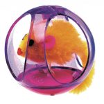Търкаля като топка, а вътре има плюшено мишле. Изработена е от здрава, прозрачна пластмаса с отвори отстрани, които позволяват да се види мишката отвътре и така буди любопитството на вашата котка. Размери: 6.5 cm.