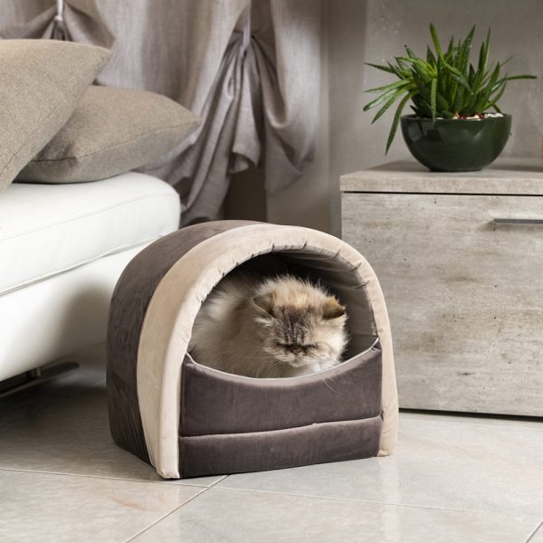 Majesty, топла и супер удобна, е елегантна кадифена къща, предназначена за котки, особено за тези, които са по-срамежливи и сдържани от обикновено. Кръглата му форма създава интимна и откъсната среда, която е идеална за дрямка! Вашият приятел ще се чувства защитен и в безопасност вътре, дремейки далеч от пронизващи погледи, или ще наблюдава зорко заобикалящата го среда с дискретност, като държи всичко под контрол. Majesty идва с двулицева възглавница и долна входна лента, за да улесни качването и излизането. Предлага се в различни елегантни цветове и може да се пере в пералня при ниски температури (максимум 30° C).