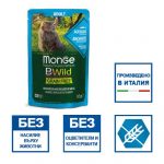 Monge BWild включва храни с ниско съдържание на зърнени култури и храни без съдържание на зърнени култури: